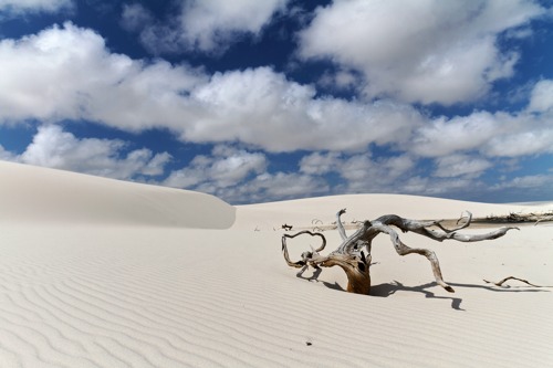 Nous avons fait un trekking de plusieurs jours dans le Parc national des Lençóis Maranhenses, marchant plusieurs heures dans le sable blanc dès 4heures du matin, avant les grandes chaleurs et le soleil qui se réfléchit sur le sable