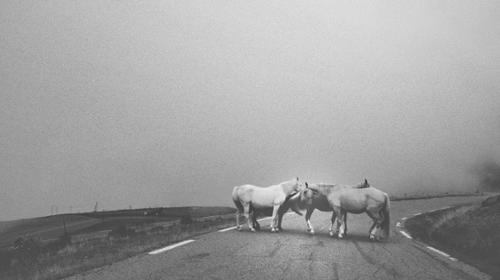 Je n ai pu m empêcher de capturer ce moment lors d'une descente d un road trip dans les Pyrénées. Un moment magique, inoubliable. Ils étaient là en plein milieu de la route, libre dans cette immense nature, les uns contre les autres ne faisant plus qu un.